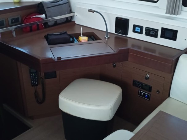 Dieses Boot ist mit einem Durchgelattetes Großsegel und einem Rollgenua ausgestattet. Es ist unter anderem mit folgender Ausrüstung ausgestattet: Autopilot, Außenlautsprecher, Deckdusche, Solar-Panel, Klimaanlage, Elektrowinch, Außenkühlschrank.